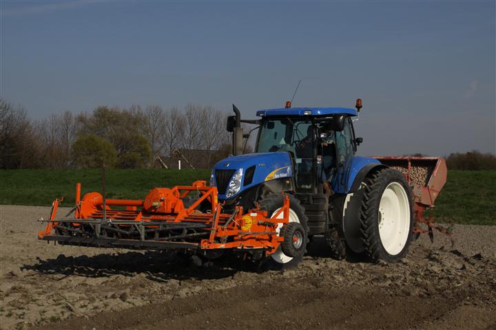 Nieuwe New Holland T7030 Auto Command met Struik frontfrees en Kverneland aardappelpoter van akkerbouw- en loonbedrijf C.A Nobel uit Oudenhoorn.