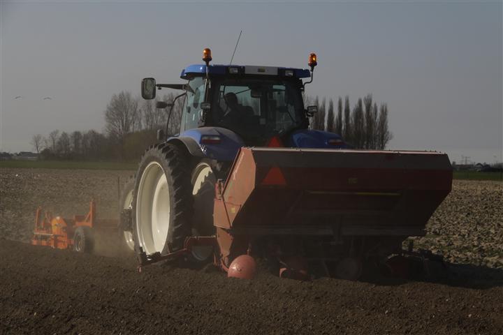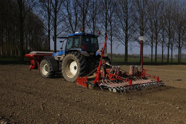 Om sneller te kunnen rijden, en voor een betere verkruimeling, wordt het land eerst voorbewerkt door een NH TS125A met Cappon koppensneller en Lemken Kompaktor.