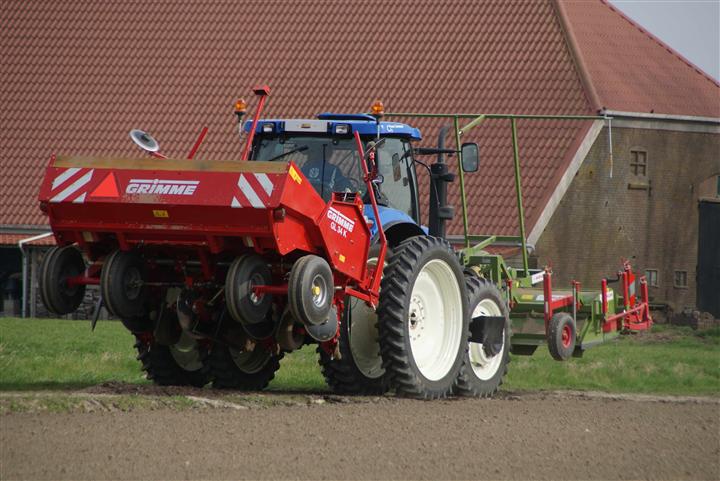 NH TS115A Plus met VDW zaaibedcombinatie, Kverneland kopeg en Hassia aardappelpoter.