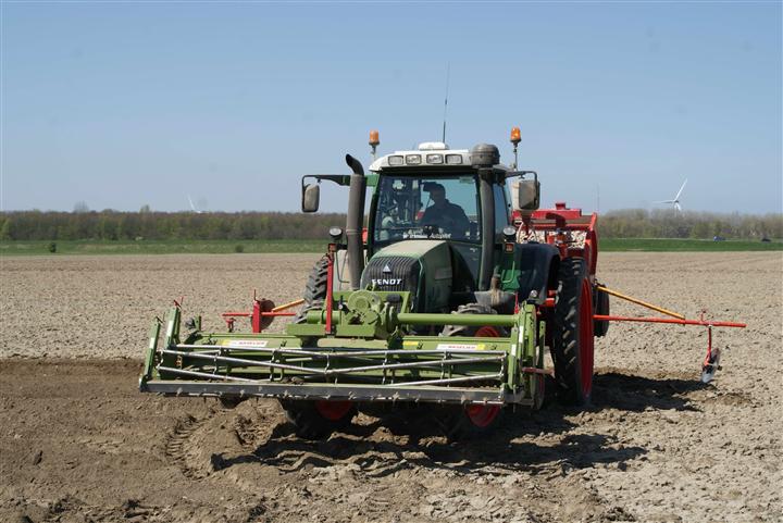 Fendt 820 Vario met Baselier FF310 frontfrees en Grimme VL 20 KLSA aardappelpoter van Vrolijk Landbouw uit Fijnaart.