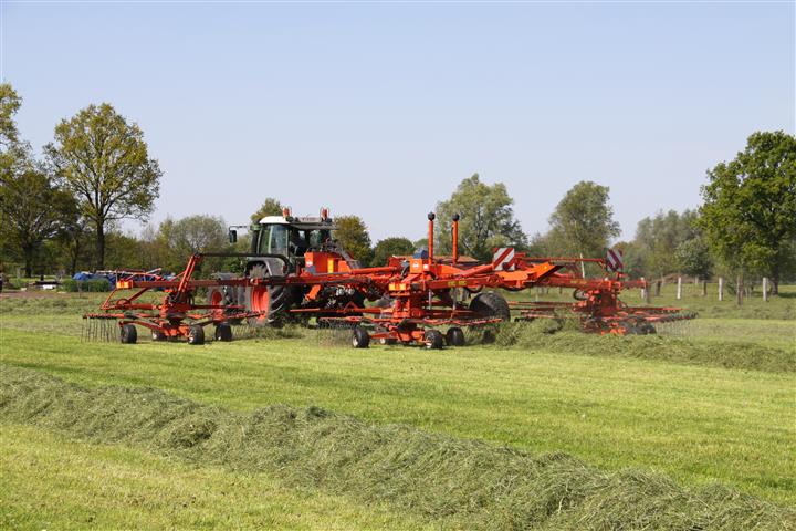 Fendt Favorit 716 Vario met een Kuhn GA 15021 hark van loonbedrijf Greefs uit Essen/Horendonk.
