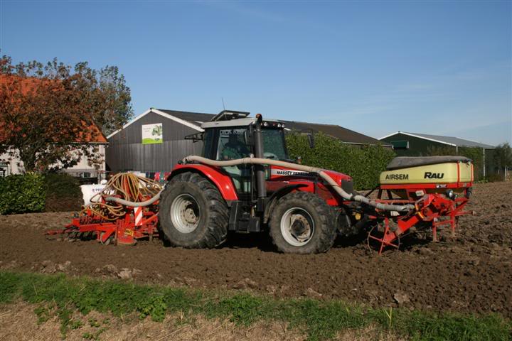 Wintertarwe zaaien door loonbedrijf Dick Klok uit Heenvliet met een Massey Ferguson 7480 met Rau Airsem fronttank, kopeg en pneumatische zaaimachine.