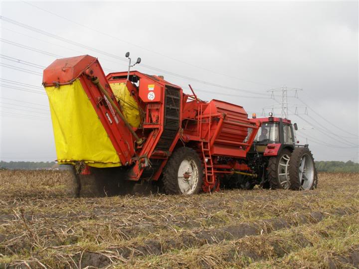 Aardappels rooien met een Case International 4230xl met Quicke voorlader en Grimme HLS 750 rooier.