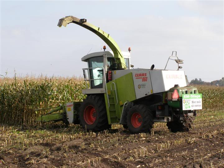 Maïs hakselen met een Claas Jaguar 690 en Caseih 856xl met Beco Gigant 160 dumper omgetimmerd tot silagekipper.