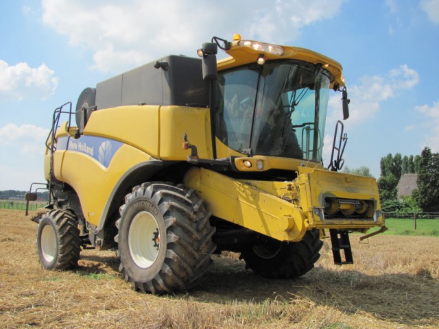 New Holland CX 860 van akkerbouwbedrijf Niemandsverdriet uit Puttershoek aan het lossen bij een John Deere 6620 met Miedema Prestige 125 kipper van akkerbouwbedrijf Zwaal uit Barendrecht.