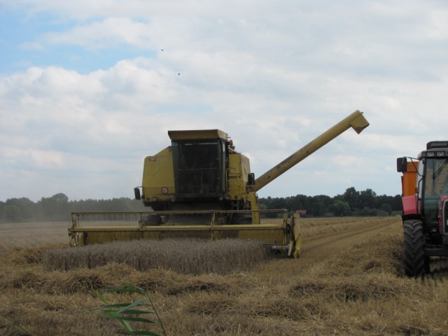 zoals je op de foto's kunt zien staat er op inrit een hek en is dit niet al te ruim daarom moest de maaibordkar eerst door het hek heen en dan de combine er achteraan. de trekker kan veel korter draaien en heeft beter zicht op wat er gebeurt.