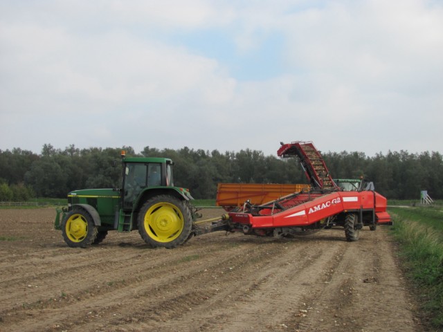JD 6506 met een Grimme DL 1500 rooier en NH TS 90 Turbo met een Vaia NL/120 kipper van Piet de Reus.
