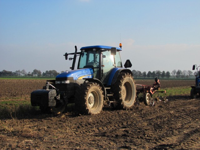 NH TM 120 met een Kongskilde Vibroflex 4300 cultivator van Arie Barendrecht uit Rhoon.