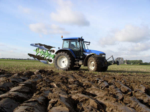 Ploegen met een New Holland TM 120 met Rumptstad 3 schaar in Strijen.