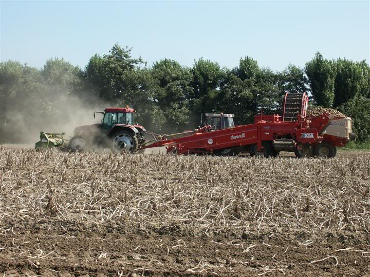 Aardappels rooien door loonbedrijf A. Steendijk uit heijningen met een Case International MX 135 met Baselier loofklapper en Dewulf Axia rooier.