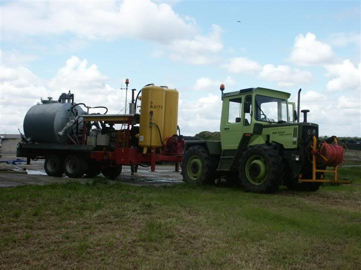 MB-Trac 900 Turbo met slangenhaspel en Agito pompwagen van loonbedrijf Gebr. Frijters uit Oude-Molen.