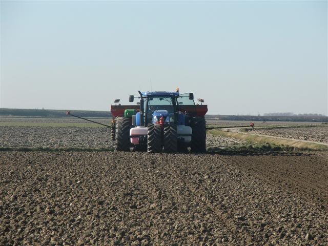 Voor de combinatie is een New Holland T7040 gebruikt met Cappon neuswiel voorop en Kverneland kopeg met Warrens Delta Planter Drill Fifteen achterop.
