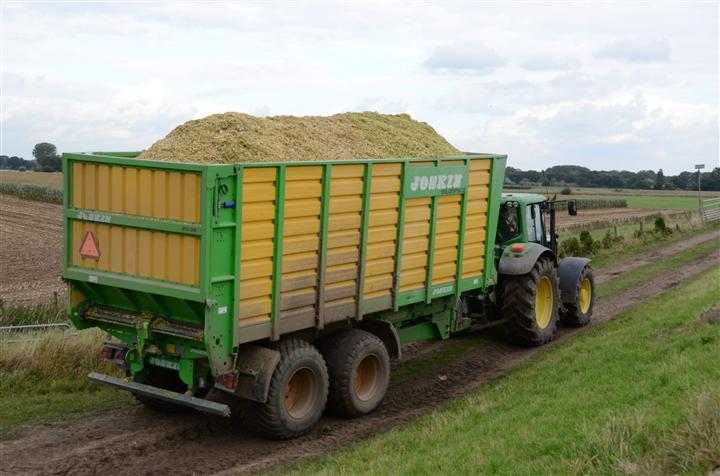 New Holland FR9040 en John Deere 6920 met Joskin Silospace 20-38 silagewagen.