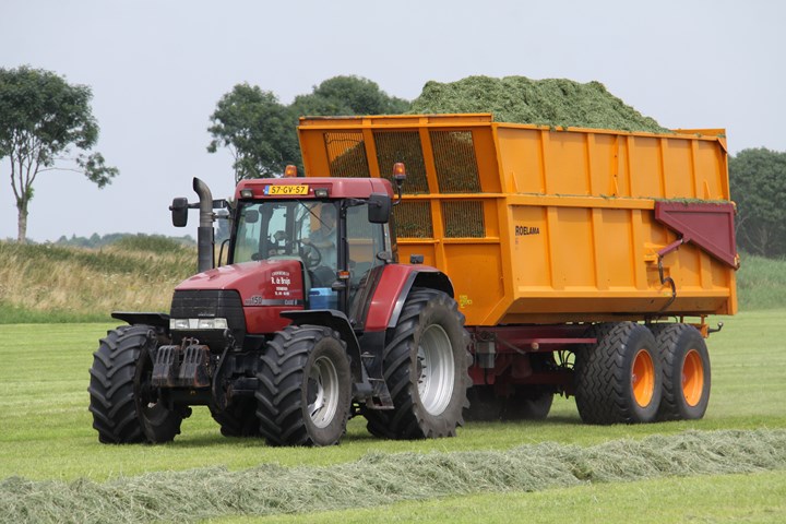 Case IH MX 150 met Roelama silagekipper van loonbedrijf R. de Bruijn uit Steenbergen.
