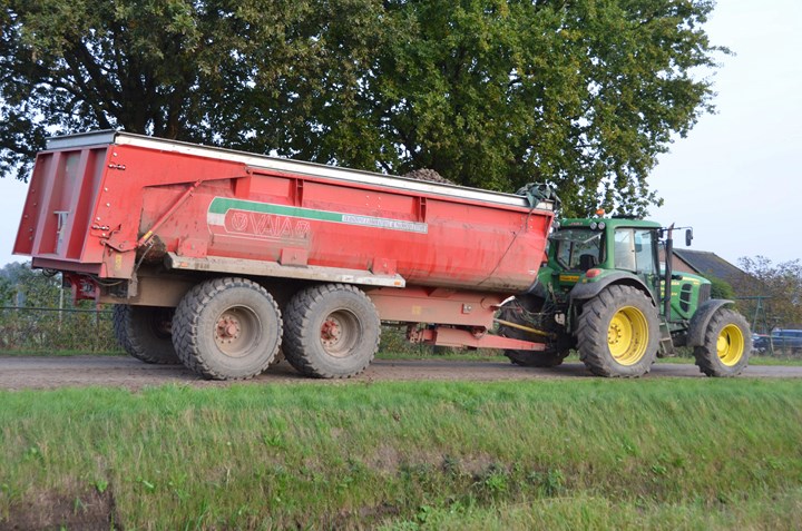 JD 6630 met een Vaia NL/18 kipper van akkerbouw- en loonbedrijf H. van Wijgerden uit Andel.