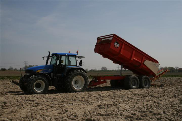 NH TM 190 met Beco Super 1400 kipper en Samon onderlosser van akkerbouw en loonbedrijf Gebr. Varekamp uit Tinte.