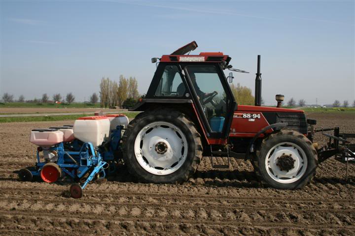 Fiat 88-94dt met 4 rijige Monosem maïszaaimachine van loonbedrijf Groenveld uit Rockanje.