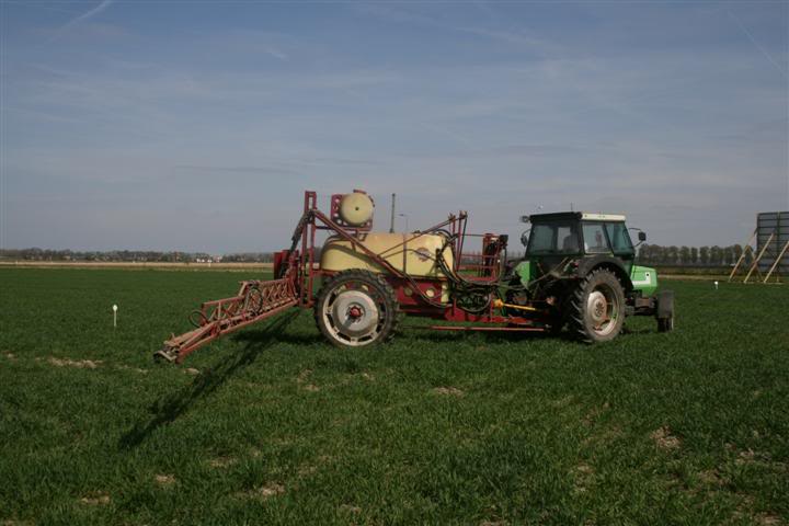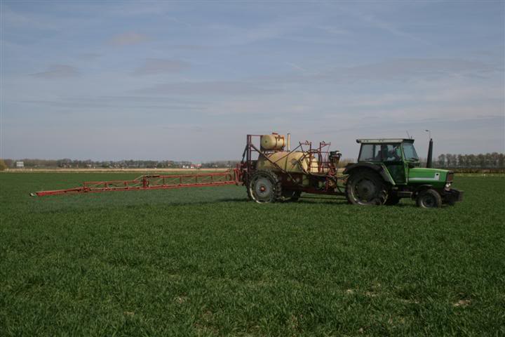 Deutz Fahr DX 4.30 met 21m brede Hardi veldspuit.