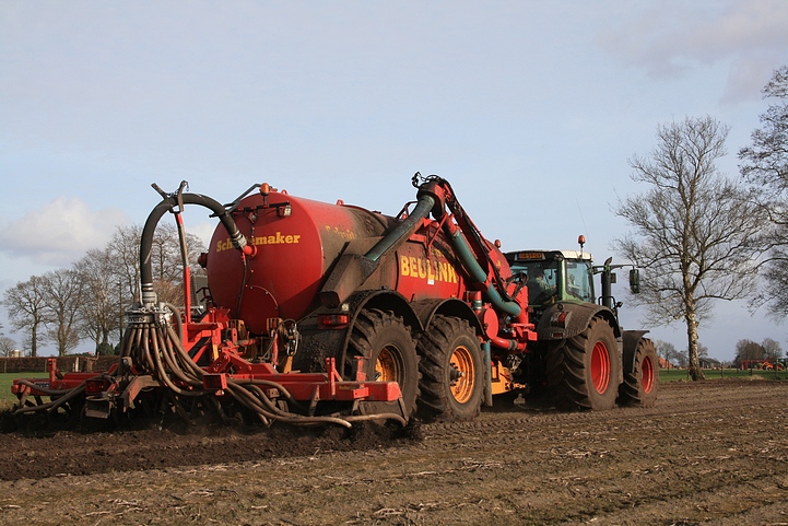Fendt 722 Vario met Duport mesttank en Evers Freiberger bouwlandbemester van loonwerker Roelof Timmermans uit Drouwenerveen.