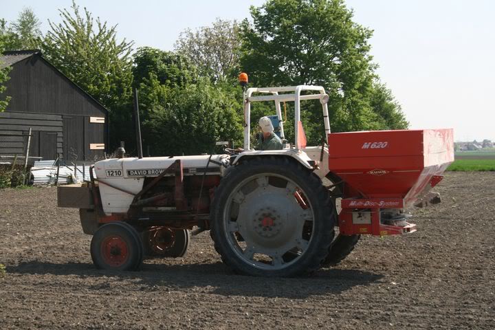 Kunstmest strooien op de suikerbieten met een David Brown 1210 met Rauch Kuhn 620 strooier in Oud-Gastel.