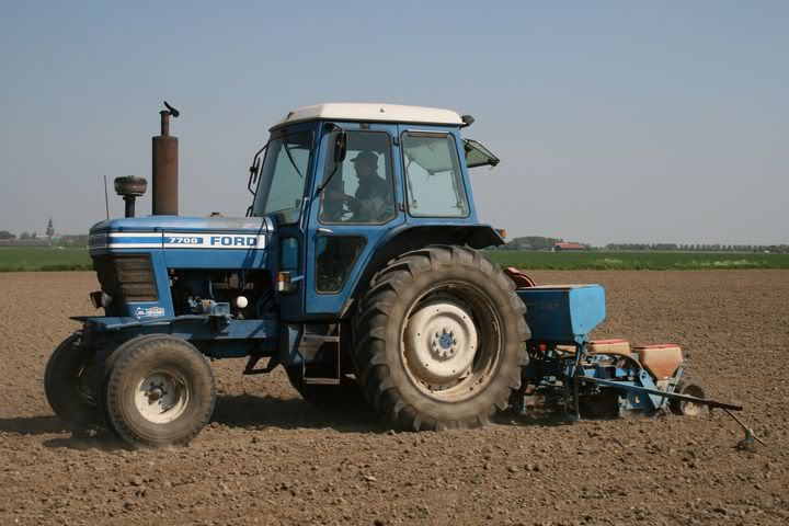 Ford 7700 maïs aan het zaaien met een 4 rijige Monosem zaaimachine.