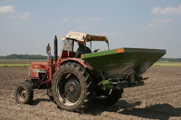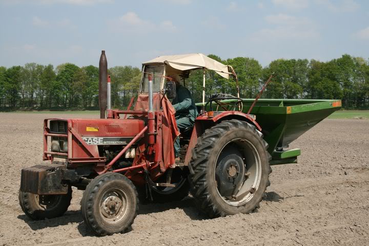 Case International 733? met Amazone kunstmeststrooier.