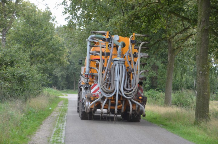 JD 7920 met een drie assige Schuitemaker haakarm carrier en opgebouwde Robusta mesttank en Veenhuis bouwlandbemester van loonbedrijf Heldens uit Melderslo - Broekhuizen.