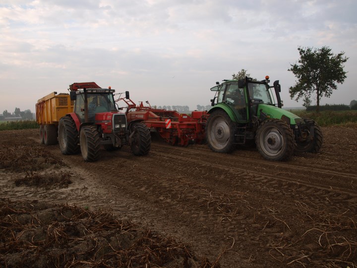 Direct even een vrachtje aardappelen geladen met de grondkipper.