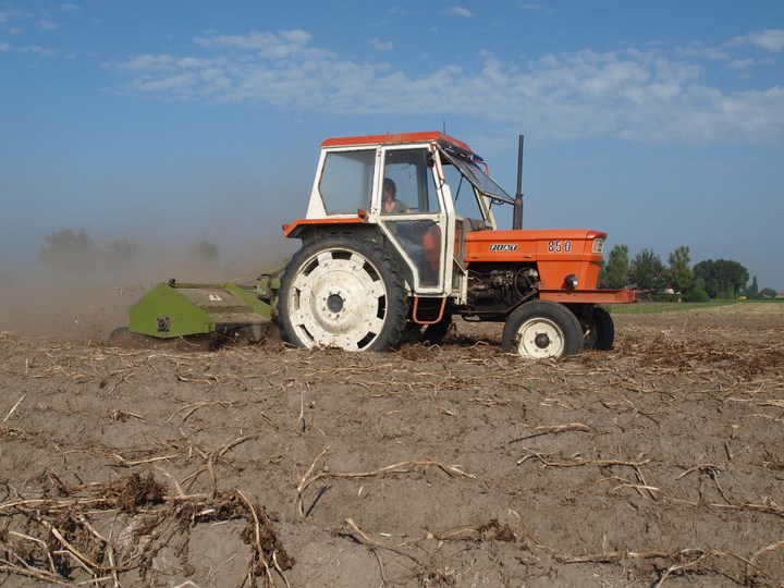 De trekker gebruikt 12 liter dieselolie op 4 hectare. Goedkoop werken dus!