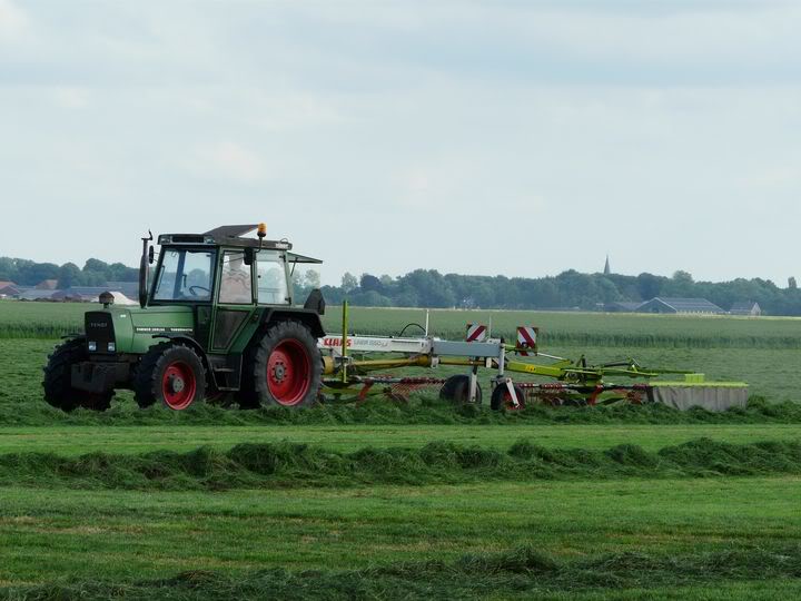Nog één deel foto's van Hendrik en dan hebben we ook de tweede snee er voor een groot gedeelte opzitten. Verschillende boeren in de buurt waren vorige week bezig met maaien, schudden, harken en inkuilen. Hiervoor bezocht hij onderandere onze Duitse vriend Janssen.