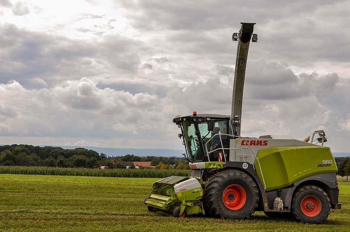We beginnen met het hakselen van luzerne. Dat gebeurde met een Claas Jaguar 960, met 300 pick up, en een New Holland T7050 met Schuitemaker Rapide 3000 dubbeldoelwagen.