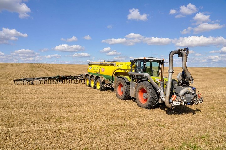 John Deere 7430 met een mesttank.