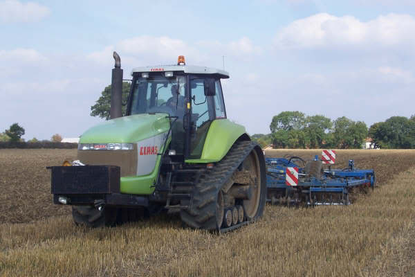Claas Challenger 55 met een Rabe Firebird cultivator.