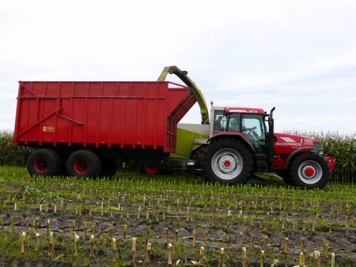 Mc Cormick MTX 185 met een zelfbouw silagekipper.