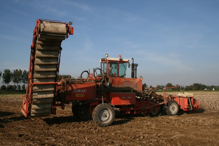 De aardappels worden gerooid met een Amac ZM 4 van loonbedrijf A.J.G van Rossum uit Ooltgensplaat.