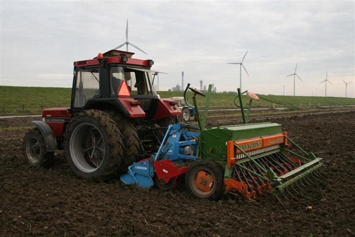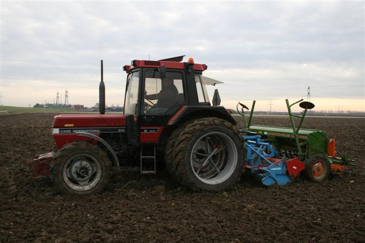 De wintertarwe wordt gezaaid door een Case IH 845xl Plus met een Lemken kopeg en Amazone D8-30 Super zaaimachine.