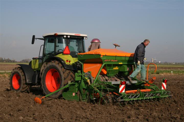 Claas Arion 640 met een Amazone AD-P Super zaaimachine. Deze was bezig proefvelden aan te leggen van Amazone waar verschillende zaaimethodes worden getest.