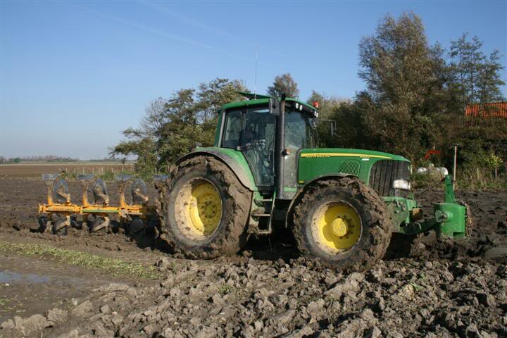 JD 6820 met een 4 schaar Rumptstad RPV 120-480 ploeg van Renke Groeneveld uit Vierpolders.