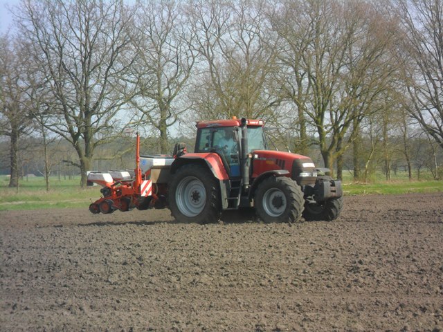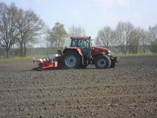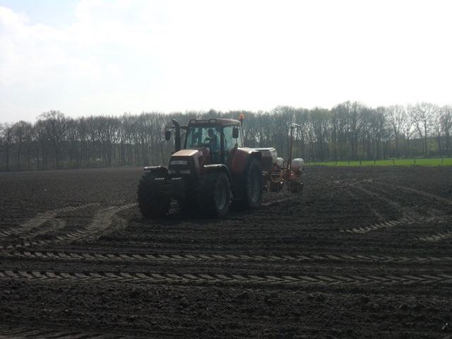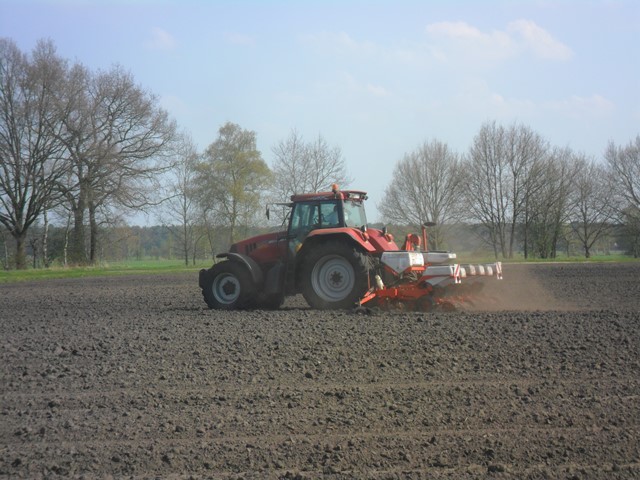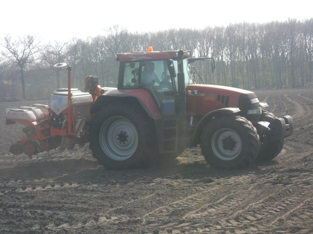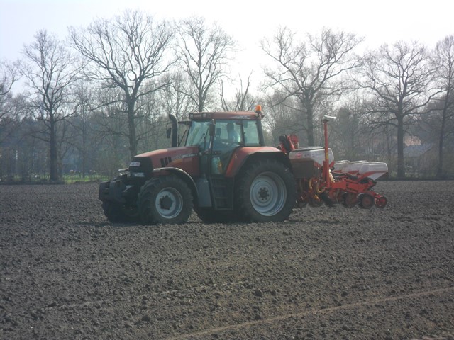 Melkveebedrijf Kools-Willemsen aan het maïs zaaien met een Case IH CVX 120 en zesrijïge Kuhn maïszaaimachine.