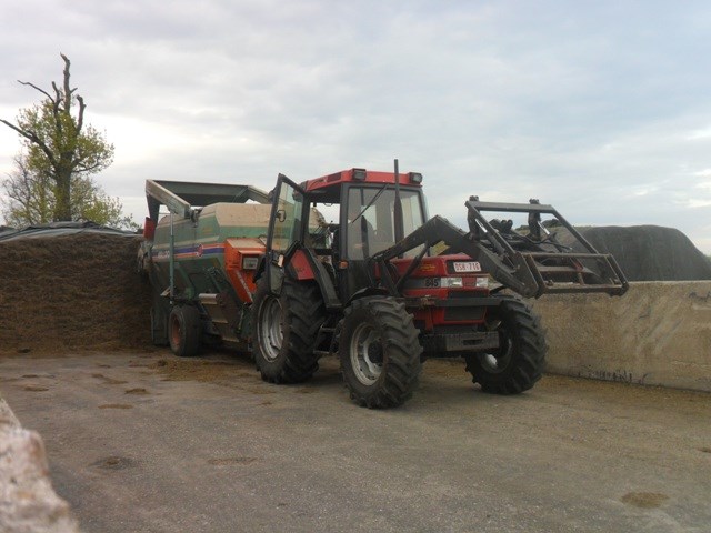 Case IH 845xl Plus met voorlader en Storti DMU Bulldog voermengwagen van Peeters.