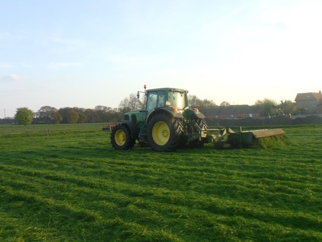 In België werken de meeste veehouders vaak iets anders dan in Nederland. Maïs wordt vaak gezaaid op grasland wat eerst nog moet worden gemaaid en ingekuild. Ibe Sanders fotografeerde deze drukke werkzaamheden van het maaien en ook het mest rijden en ploegen.